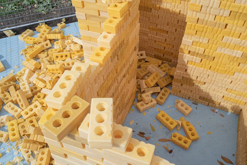 Inspirée par les Zangbeto, les gardiens nocturnes traditionnels du Vodún chez les peuples ogu du Bénin et du Togo, Pè Béto réimagine leur puissante forme de mascarade. Caché à l’intérieur de la sculpture, un haut-parleur diffuse une musique enregistrée par le grand-père de Wany, Albert Gibbs. Sur cet enregistrement, il interprète des pièces à la mandoline dédiées à chacun de ses enfants qui a quitté Haïti au début des années 1970. La sculpture devient ainsi un réceptacle de mémoire diasporique, portant des récits de départ, de déracinement et de continuité entre les générations.
